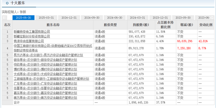 特变电工股权结构呈现“国资背景+民营控股”特征,主要股东信息如下所示: