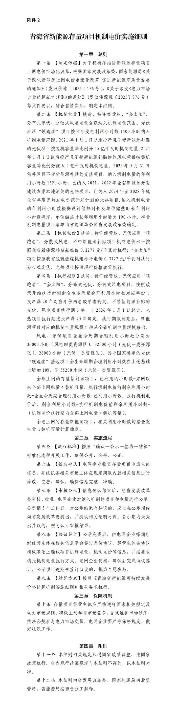 青海“136号文”正式稿:存量无补贴项目执行期6年,0.2277-0.3127元/kWh,电量等比例分配
