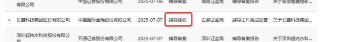 10月10日消息,据证监会官网披露,长鑫科技集团股份有限公司IPO辅导状态变更为“辅导验收”。