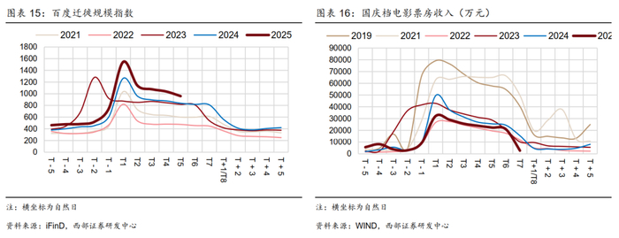 国庆假期前5日出行人数同比增长4.8%,前6日电影票房突破15亿元。2025年国庆中秋假期出行活力强劲,前半程全社会跨区域人员流动量创历史新高,人员迁徙规模显著高于季节性,10月1日至5日,国庆假期全社会跨区域人流量达15.4亿人次,同比增长4.8%;从电影票房来看,10月1日至6日,电影票房收入突破15亿元,低于去年同期水平;假期地产销售弱于去年同期,整体偏弱。