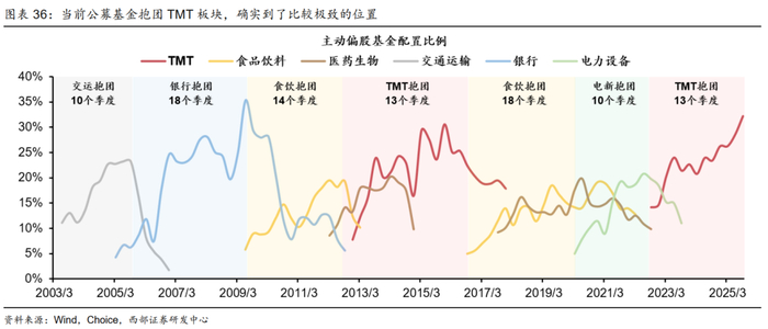 公募基金对TMT的持仓已经超过30%,达到较为极致的位置,市场风格或将切换。行业配置建议——