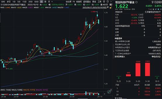 港股科技大跌,全天持续溢价!港股通科技30ETF跌近4%连续16日吸金!