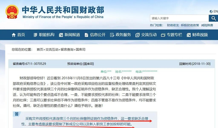 回复六:87号令规定,资格条件不得作为评审因素。为员工缴纳社保是政府采购法规定的供应商资格条件,不能作为评审因素。
