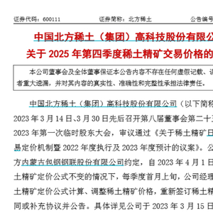 10月10日晚间,包钢股份、北方稀土发布公告,上调2025年第四季度稀土精矿关联交易价格。