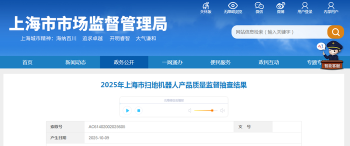 2025年上海市扫地机器人产品质量监督抽查结果公布