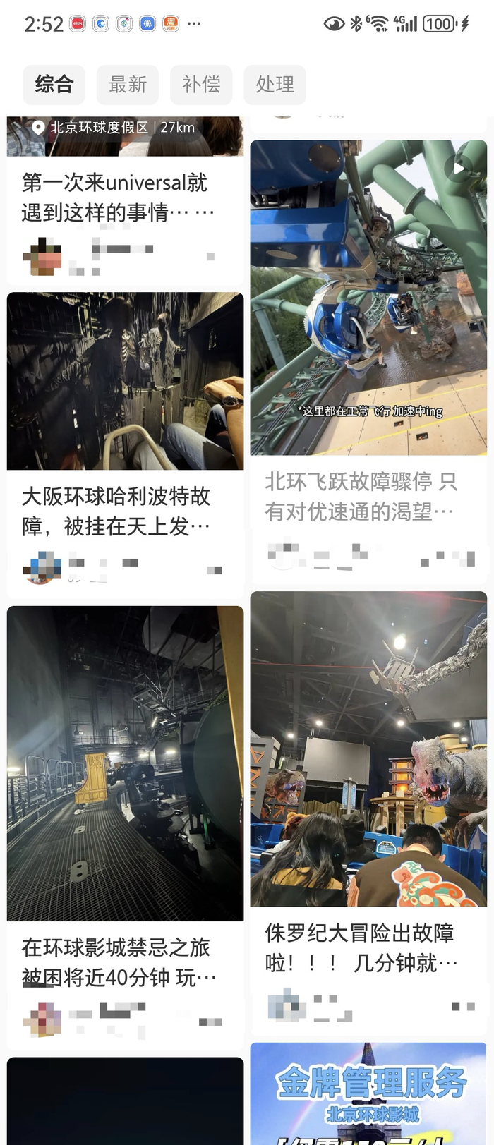 北京环球影城设备故障 游客雨中被困40分钟要求退票被拒