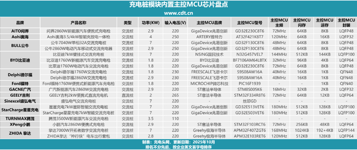 基于此,充电头网拆解了多款充电桩模块,将其内置主控MCU做了系统汇总与横向对比,为工程师的方案评估与器件选型提供直观参考。