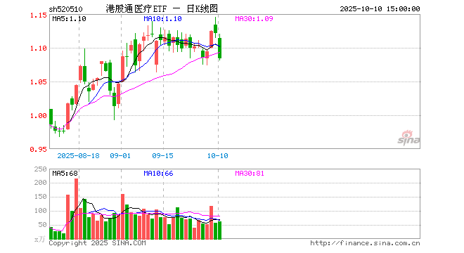 10月10日港股通医疗ETF(520510)份额减少100.00万份,最新份额2.32亿份,最新规模2.49亿元