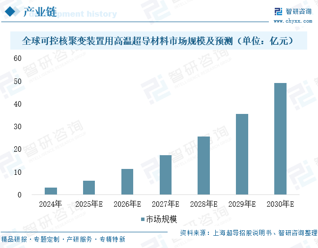 从应用领域来看,高温超导材料已成为撬动可控核聚变、智能电网、高端医疗装备、精密制造及前沿科研等战略领域变革的核心支点,尤其在可控核聚变领域,其零电阻、强磁场特性使其成为托卡马克装置磁约束系统的首选材料。随着全球对"终极清洁能源"的竞逐进入白热化阶段,45家商业化核聚变企业加速技术攻关与资本布局。其中,美国CFS公司计划2030年前实现NET发电示范,日本JAEA目标2035年建成DEMO原型堆,中国则依托上海超导产业集群形成"核聚变装置-超导材料-关键部件"全链条协同创新体系。据预测,受核聚变研发加速与超导电网升级双重驱动,2024-2030年高温超导材料市场将以59.3%的年复合增长率扩张,2030年市场规模有望突破49亿元,成为新材料领域最具爆发力的增长极。