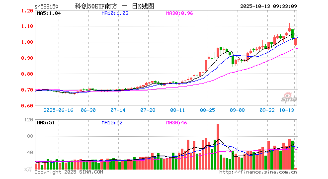 10月13日,科创50ETF南方(588150)开盘跌4.59%,报0.976元。科创50ETF南方(588150)重仓股方面,中芯国际开盘跌1.52%,海光信息跌0.20%,寒武纪跌2.97%,澜起科技跌6.04%,中微公司跌4.00%,金山办公涨6.50%,联影医疗跌3.36%,传音控股跌4.32%,九号公司跌5.13%,芯原股份跌5.92%。