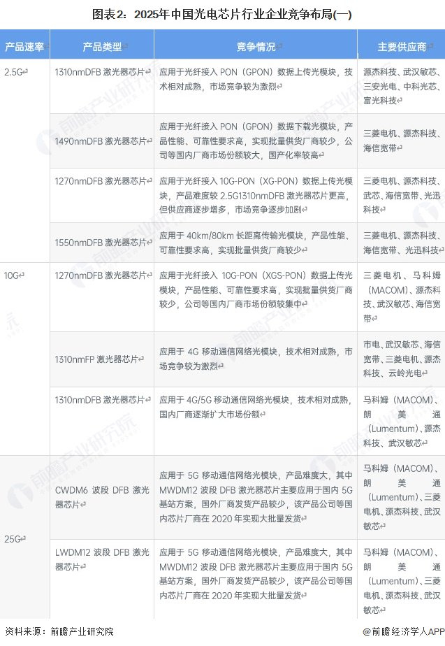 2、中国光电芯片行业企业竞争布局