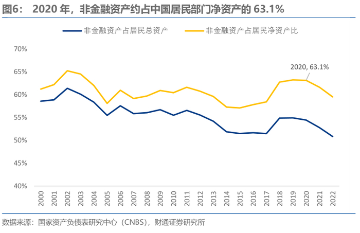 而截至2020年,非金融资产在中国居民部门净资产中的占比约为63.1%,房地产恰好又是我国居民部门最主要的资产,使得过去四年房价下跌的过程中,居民消费受到了较大的拖累。