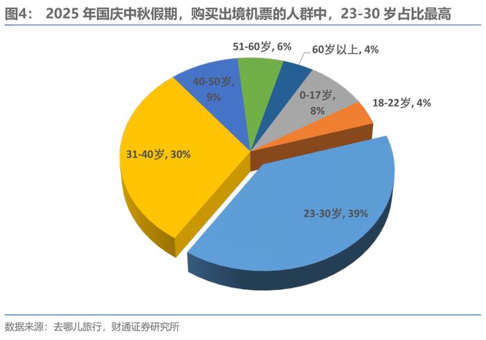 去哪儿旅行数据显示,本次假期,13-17岁(2008-2012年出生)首次购买出境机票增幅达到63%,增幅领跑各年龄段;购买出境机票的人群中,23-30岁(1995-2002年出生)占比39%、为各年龄段最高,其次是31-40岁(1985-1994年出生)占比30%。