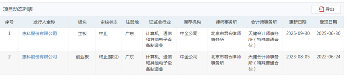 2022年6月,惠科曾向深交所递交了首次公开发行股票并在创业板上市申请,后于2023年8月申请撤回申请文件。