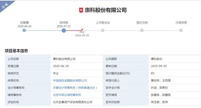 对于本次IPO,惠科于2024年宣布重启上市之路;2025年6月初完成上市辅导;6月30日获得受理;7月11日,深交所官网显示,惠科IPO已进入问询阶段。