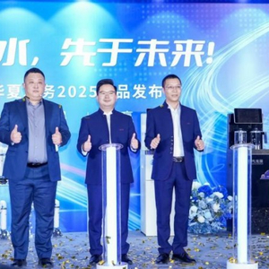 *拍摄于华夏水务2025新品发布会现场,图中三位分别为:华夏水务(北京)有限公司运营总裁 彭义(左)、华夏水务(北京)有限公司董事长 张紫星(中)、华夏水务(北京)有限公司全国市场总裁 谢昊洋(右)