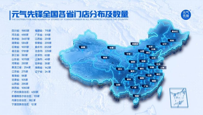 *元气先锋全国各省门店分布及数量