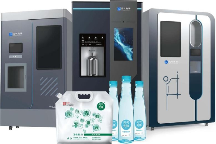 *华夏水务旗下品牌元气先锋产品矩阵:元气先锋第四代物联网一体机、元气先锋第三代商用一体机、元气先锋第五代自动灌装一体机;与袋装饮用水、瓶装饮用水