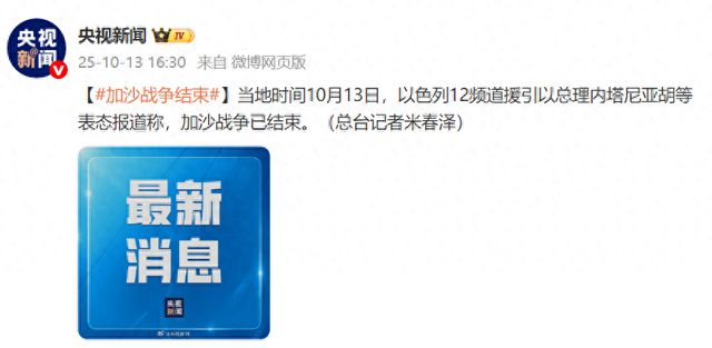 以色列12频道援引以总理内塔尼亚胡等表态报道称,加沙战争已结束 环球网 环球网官方账号 2025.10.1316:31 关注 当地时间10月13日,以色列12频道援引以总理内塔尼亚胡等表态报道称,加沙战争已结束。(总台记者米春泽)