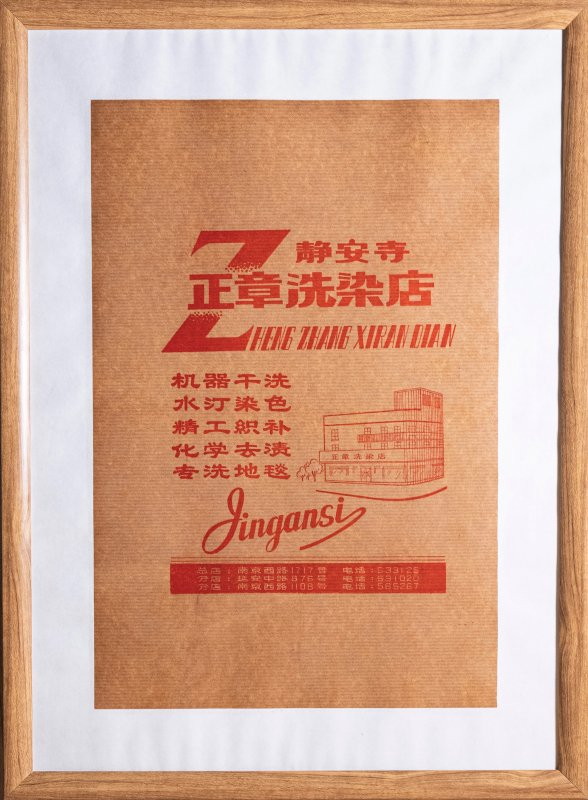在正章洗染店20世纪80年代的包装纸上,整齐地写着“机器干洗 水汀染色 精工织补 化学去渍 专洗地毯”,并介绍了店里最有名的几项服务。这家上海老字号洗衣行,今年恰逢100周年,它现在的位置是北京西路1868号。1925年初创时,创办者吴锦章在淮海中路设店,次年探索连锁经营,将分店开在南京西路。正章一直坚持在橱窗陈列设备,公开演示洗染流程,并且喜欢打广告做推广。“83315”的电话号码,取沪语谐音“勿洗洗要污”,曾是老上海居民津津乐道的一则广告。