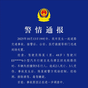 四川泸州交警:男子驾驶车辆失控撞倒行人,致2死3伤