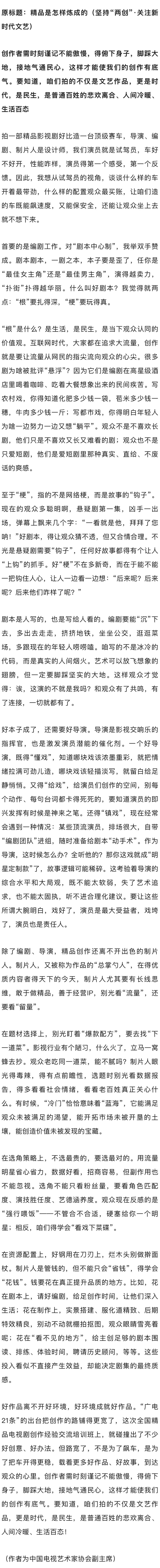 今天,《人民日报》刊发了中国电视艺术家协会副主席林永健的文章《精品是怎样炼成的》。