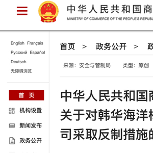 商务部新闻发言人就对韩华海洋株式会社5家美国相关子公司采取反制措施答记者问