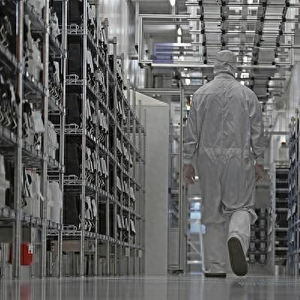 安世半导体的一名员工走过该公司的洁净室。 视觉中国