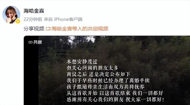 10月14日,李亚鹏和妻子海哈金喜官宣离婚:“我们于早些时候已经办理了离婚手续,孩子跟随母亲生活,由双方抚养。”