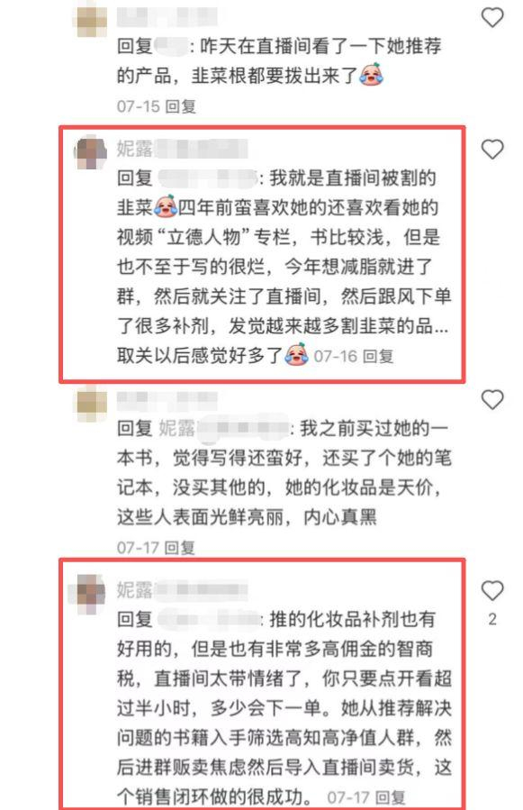 该网友指出,“张萌的销售模式实为闭环操作,从推荐解决问题的书籍入手筛选高知高净值人群,然后进群贩卖焦虑,然后导入直播间卖货。”