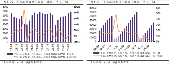 无线耳机方面,国内海关出口数据显示,2023年以来呈现复苏趋势,2024年全年无线耳机月度出口量同比增幅大部分时间为正,累计出口量同比稳定增长。2025年上半年无线耳机的累计同比始终为正,累计出口量稳定增长。无线耳机技术已经充分成熟,相对于手机消费,无线耳机普及还有空间,随着无线耳机传感器的增多,产品体验感会更加出色,叠加价值量相对手机较小,换机周期会显著快于手机。因此,随着国内的放开和经济复苏,我们继续看好无线耳机这类可穿戴设备的成长。