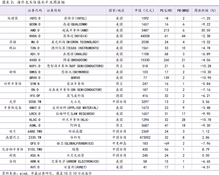 10月4日-10月10日当周,海外龙头呈上涨态势。其中,超威半导体(AMD)领涨,涨幅为30.50%。