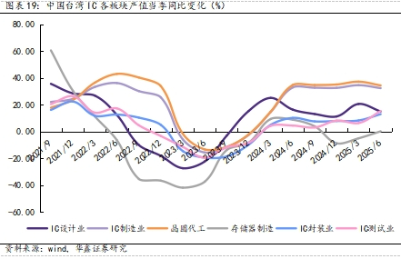 我们可以通过中国台湾IC产值同比增速,将电子各板块合在一起观察: