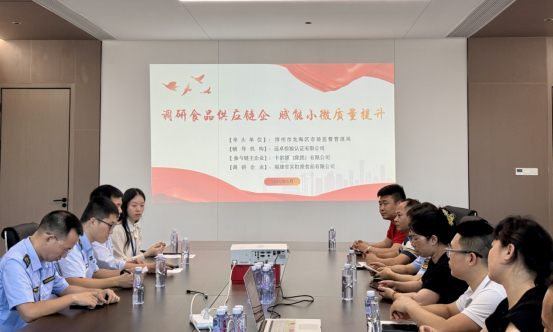 中国质量新闻网讯 为响应福建省市场监督管理局深化小微企业质量管理体系认证提升行动的工作部署,2025年6月19日、20日、23日,在漳州市龙海区市场监督管理局牵头下,联合龙海区海澄镇市场监督管理所、东园镇市场监督管理所,携手链主企业卡尔顿集团有限公司与帮扶机构远卓检验认证有限公司,对鼎泰食品、谷郡王等10家链员企业开展了食品产业链小微质量提升专项调研行动。