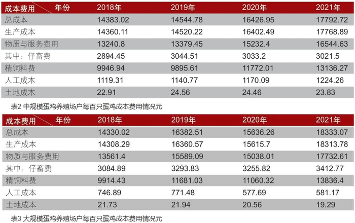 表3 大规模蛋鸡养殖场户每百只蛋鸡成本费用情况元