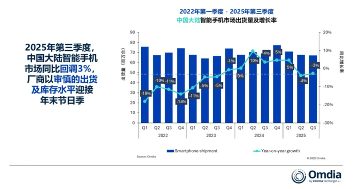 另一家机构Omdia(前Canalys)数据则显示2025年第三季度,中国大陆智能手机市场同比下降3%,具体出货量TOP5依次是:❶vivo含iQOO(约1180万台)❷华为(约1050万台)❸苹果(约1010万台)❹小米含红米(约1000万台)❺OPPO含一加(约990万台)。三家数据供大家综合查阅~ 你有为哪家作贡献吗?