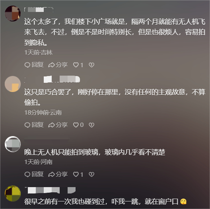 即使没有拍到隐私画面,无人机悬停窗外这一行为本身是否构成侵权?多数网友认为,家是最私密的场所,无人机贴近窗户飞行打破了居民的心理安全防线,其行为本身就带来了被窥视的恐惧感和心理不适。