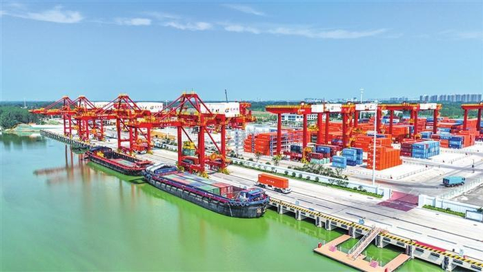 2020年以来,济宁市港口货物吞吐量、集装箱吞吐量、港航业营收年均增长24%、132%、16%,2024年全市港航业营收超800亿元。今年1~9月的数据更是显眼:完成吞吐量8624.9万吨、35.5万标箱,分别同比增长16.3%、19.1%,稳居全省内河首位,预计全年吞吐量突破1亿吨,跨入内河亿吨大港行列。