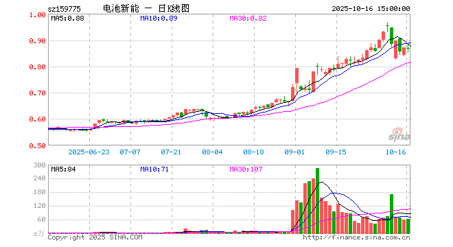 10月16日电池ETF基金(159775)份额减少1500.00万份,最新份额4.69亿份,最新规模4.07亿元