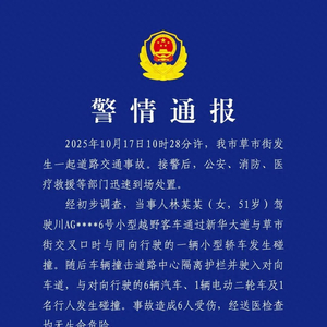 2025年10月17日10时28分许,我市草市街发生一起道路交通事故。接警后,公安、消防、医疗救援等部门迅速到场处置。