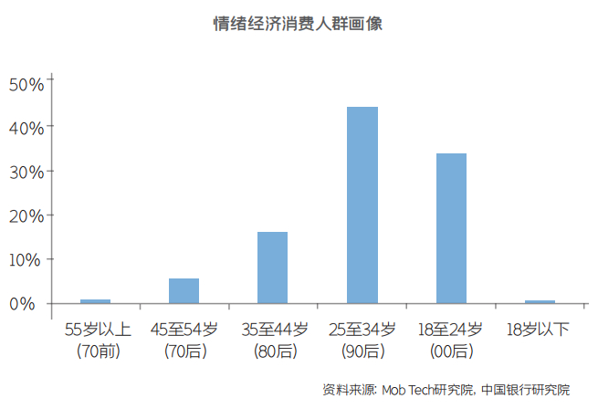 随着生活节奏加快和压力增大,年轻消费者越来越倾向通过购买满足情感和心理需求的产品或服务来调解情绪。据Mob Tech研究的数据显示,为情绪价值和兴趣买单已经成为年轻人进行消费决策时的首要考虑因素,其中90后、00后是情绪消费的主要人群,分别占据44%和33.5%。