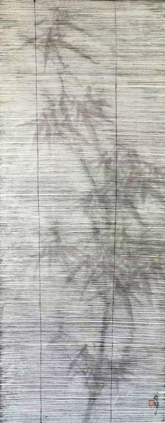 以上海美术学院毛冬华作品《帘·竹》为例,画面中,竹影透过细密的“帘”状线条若隐若现,墨色的浓淡层次与线条的秩序感交织,既保留了竹子挺拔空灵的传统意象,又借由“帘”的视觉符号营造出朦胧且富有现代感的画面氛围。作者打破常规,于虚实之间传递出竹子的清雅气韵,同时赋予作品“隔帘观竹”的诗意情境,是对传统竹题材在当代艺术语境下的创新表达。