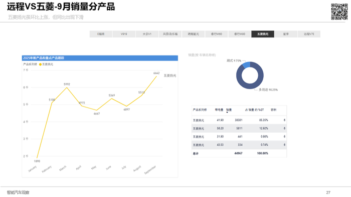 从销量走势图可清晰看到,自7月起,五菱扬光的增长曲线已显疲态,而与远程的差距逐步收窄,最终在9月被超越。这条交叉的曲线,是市场动能转换最直观的证明。