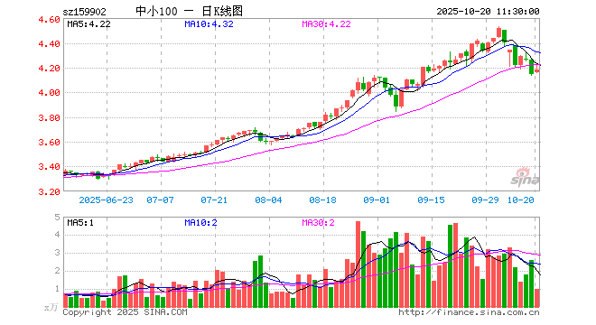 中小100ETF(159902)涨0.97%,半日成交额406.00万元