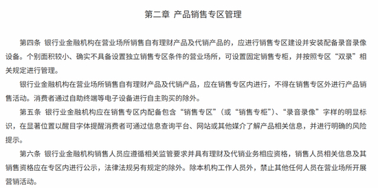 从监管法规来看,2017年银保监会发布的《银行业金融机构销售专区录音录像管理暂行规定》(银监办发〔2017〕110号)明确要求:银行需在营业场所设立销售专区,对每笔理财及代销产品的销售过程全程录音录像,完整记录营销推介、风险提示、客户确认等关键环节;录音录像资料至少要保留至产品终止后6个月,若发生纠纷则需保留至纠纷解决,且不得人为更改、删除数据。若违反上述规定,监管机构可依据《银行业监督管理法》对相关机构及责任人予以行政处罚。