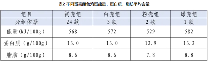 褐壳、白壳、粉壳、绿壳的鸡蛋,营养指标有差别吗?按照不同蛋壳颜色分组的试验结果,同样未见明显差异。
