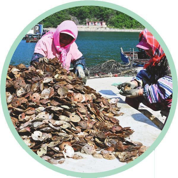 大连市长海县海上牧场的虾夷扇贝、生蚝等正值生产、销售旺季。