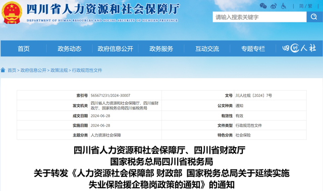 四川省发布《关于转发人力资源社会保障部 财政部 国家税务总局〈关于延续实施失业保险援企稳岗政策的通知〉的通知》。政策执行期限至2025年12月31日。