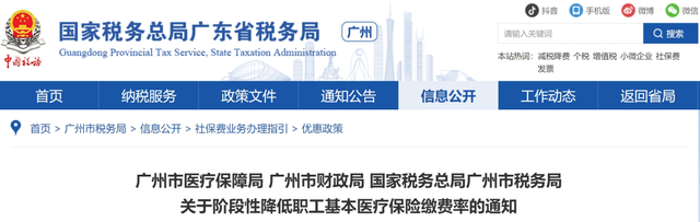 广州市发布《关于阶段性降低职工基本医疗保险缴费率的通知》,该通知有效期至2025年12月31日。
