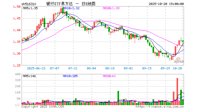 10月20日银行ETF易方达(516310)份额增加5220.00万份,最新份额24.01亿份,最新规模32.40亿元